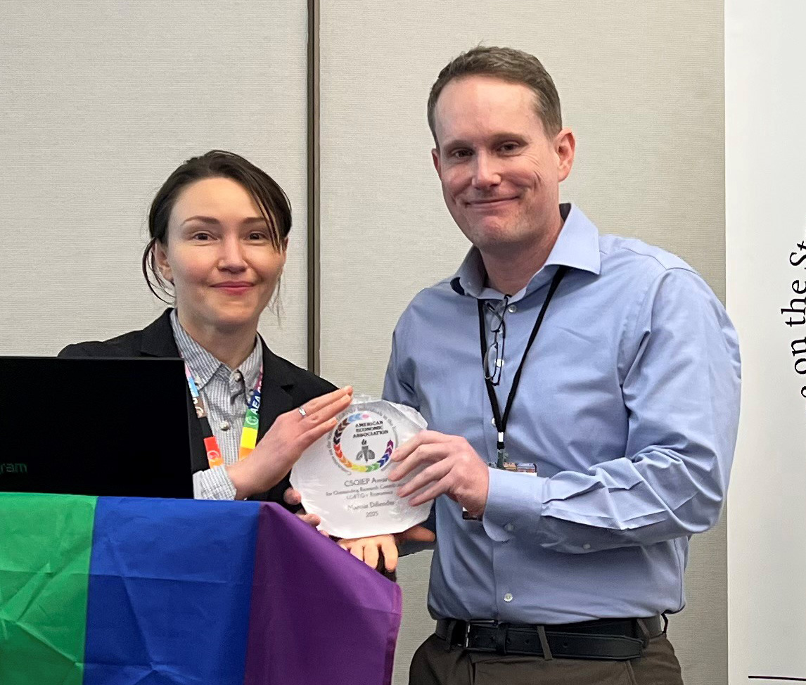Committee member Donn Feir presenting the CSQIEP Award for Outstanding Research Paper in LGBTQ+ Economics to