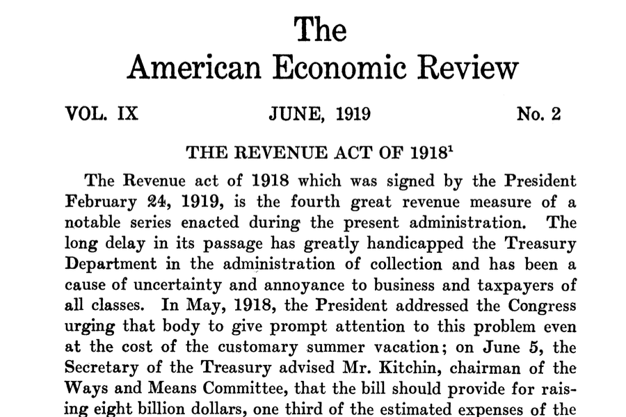The Washington Post cited a paper published 98 years ago in The American Economic Review about the Revenue Act of 1918.