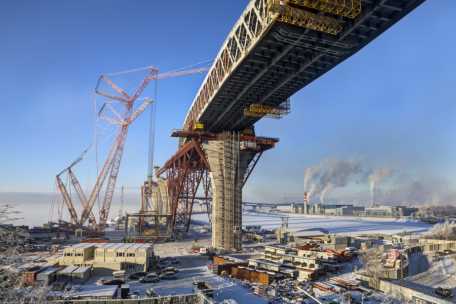A new highway bridge under construction over a canal in Saint Petersburg, Russia, January 23, 2016.