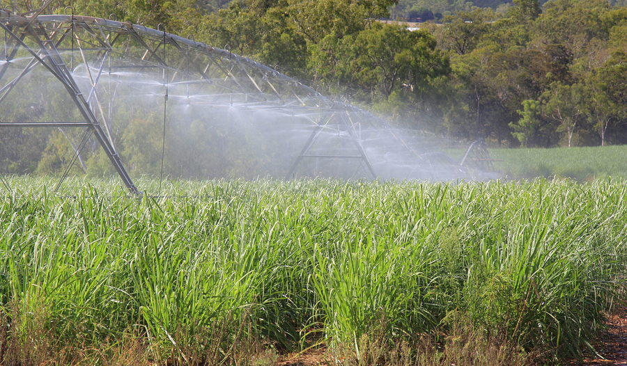 Irrigated sugarcane field in Cairns, Australia. Sugarcane farming is among the most water-intensive processes in the world.