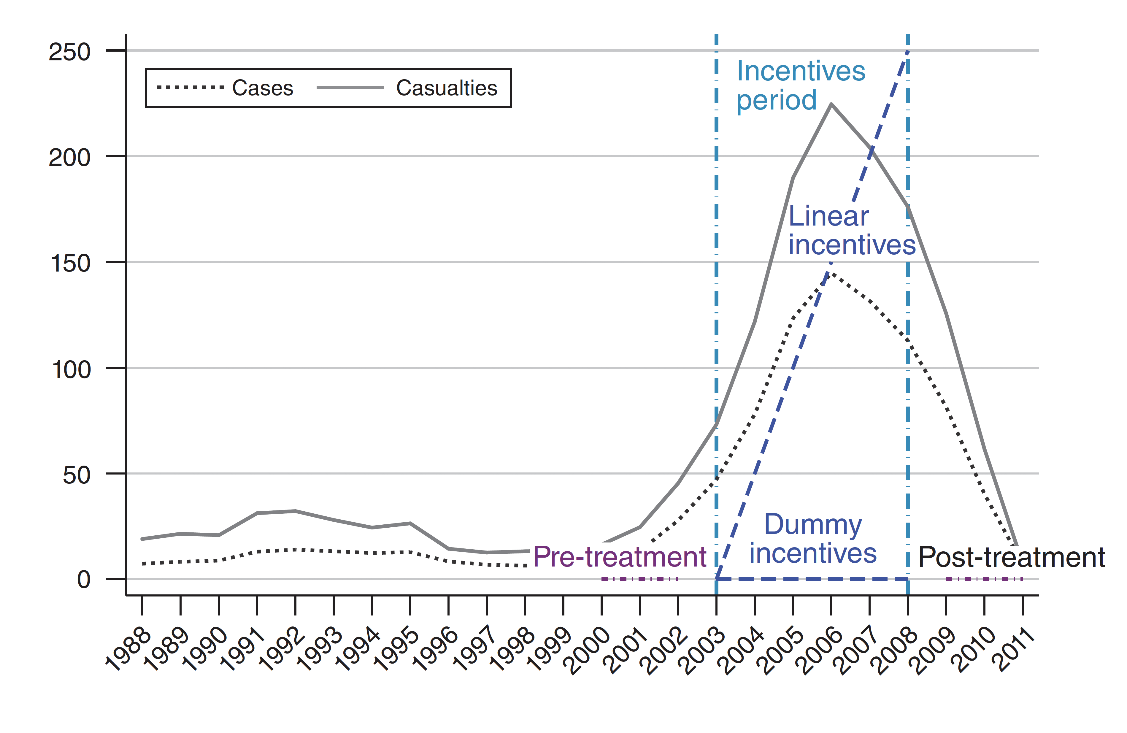 Those special incentives directly led to a large upsurge in the illegal murder of civilians, according to a paper in the August issue of the American Economic Journal: Economic Policy.