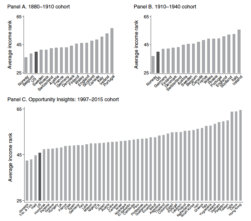 In the American Economic Review, authors Ran Abramitzky, Leah Boustan, Elisa Jacome, and Santiago Perez look back over 130 years to compare the upward mobility of children with foreign-born parents to kids with US-born parents.