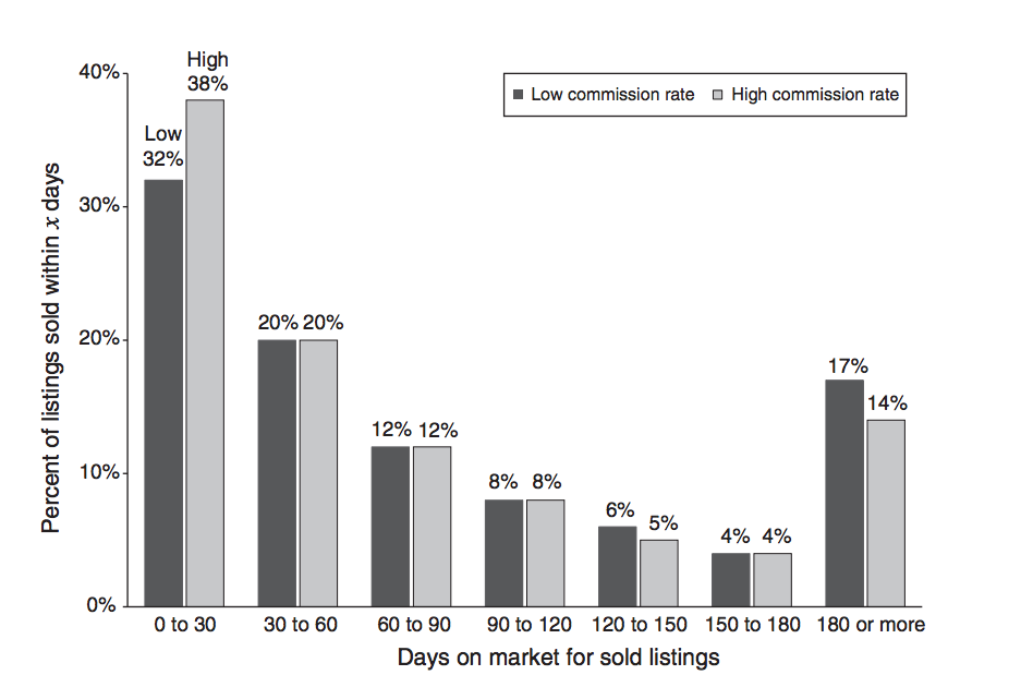 Figure 3 shows the length of time that low-commission properties spent on the market compared to homes that brought a high commission for the agent. And it shows that high commission properties sold much faster than the less lucrative deals.