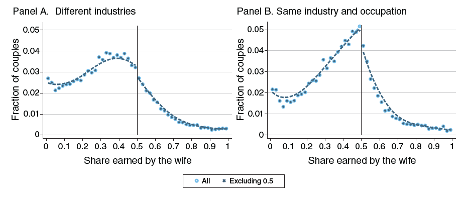 Many individuals still believe that if a woman earns more than her husband, it will cause problems in the relationship, leading to divorce or the choice to avoid marriage altogether. Past research has suggested that this view may explain a gap to the right of 50 percent in the distribution of the female share of total household earnings. Natalia Zinovyeva and Maryna Tverdostup offer an alternative explanation. Read more.