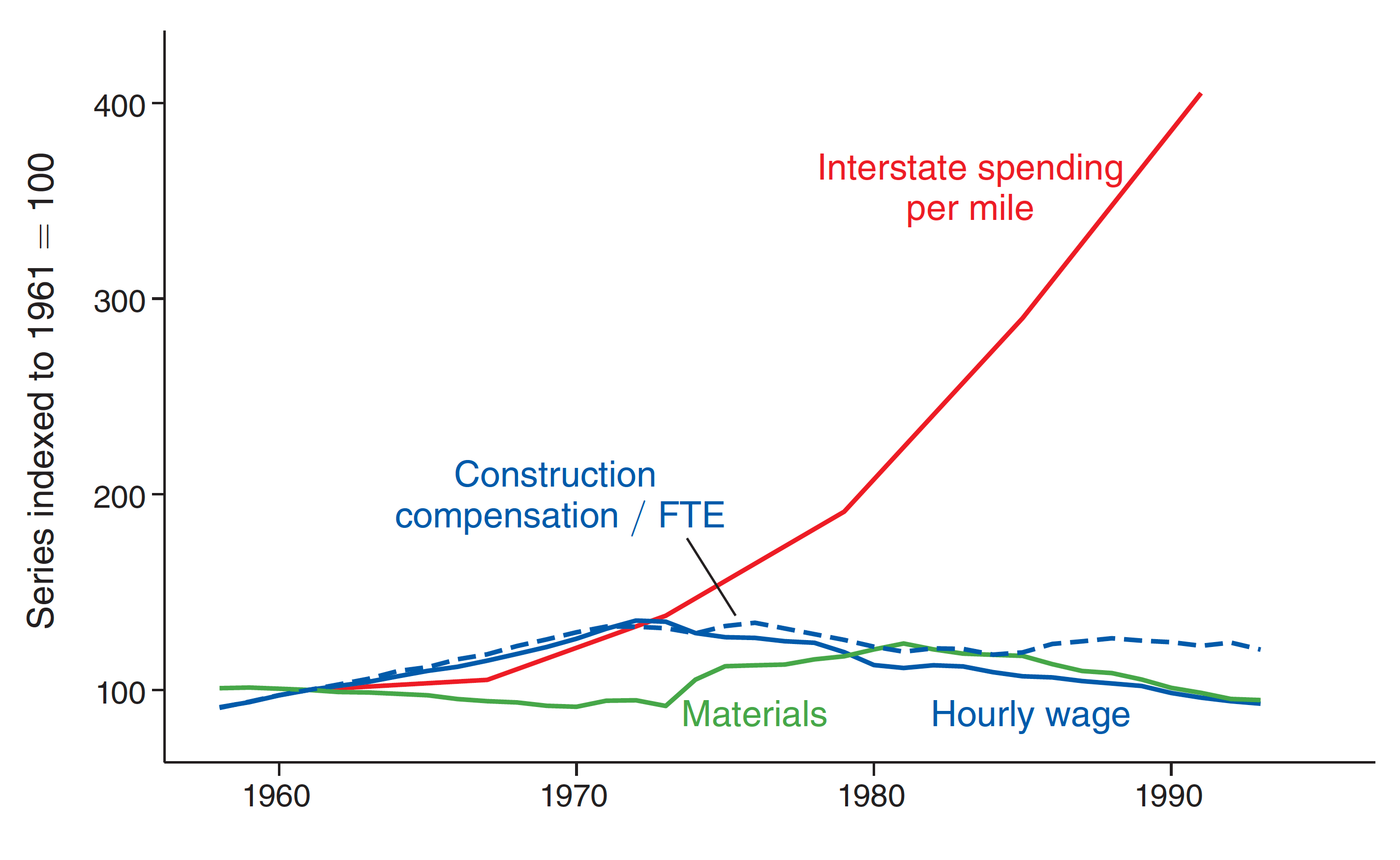 Researchers Leah Brooks and Zachary Liscow contribute to evidence on the cost trajectory of US infrastructure by documenting the growth in the per mile cost of building highways from 1956 to 1993. Read more.