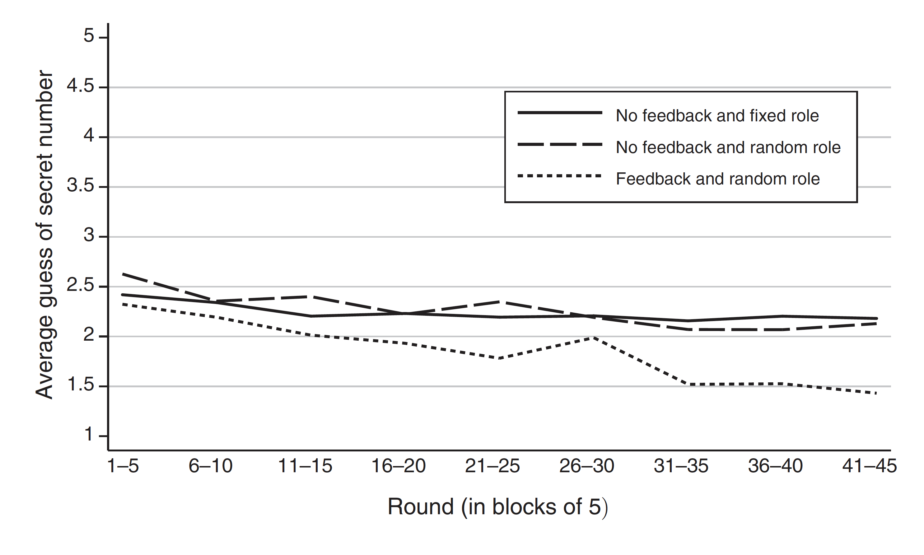 Even being told the true value after multiple rounds, receivers still consistently guessed a number that was too high when senders withheld information. The game only approached full disclosure when the researchers gave receivers repeated and direct feedback about their mistakes.