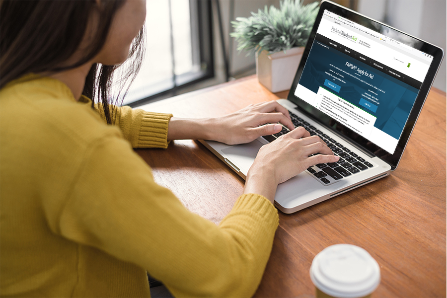 A student completes an application for federal student aid.
