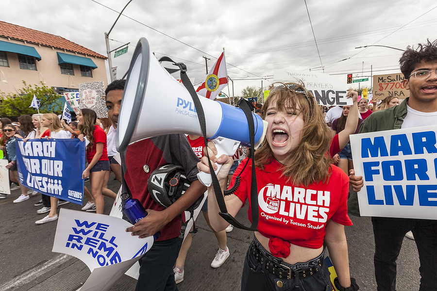A young woman at March for Our Lives protests in Tucson, AZ.