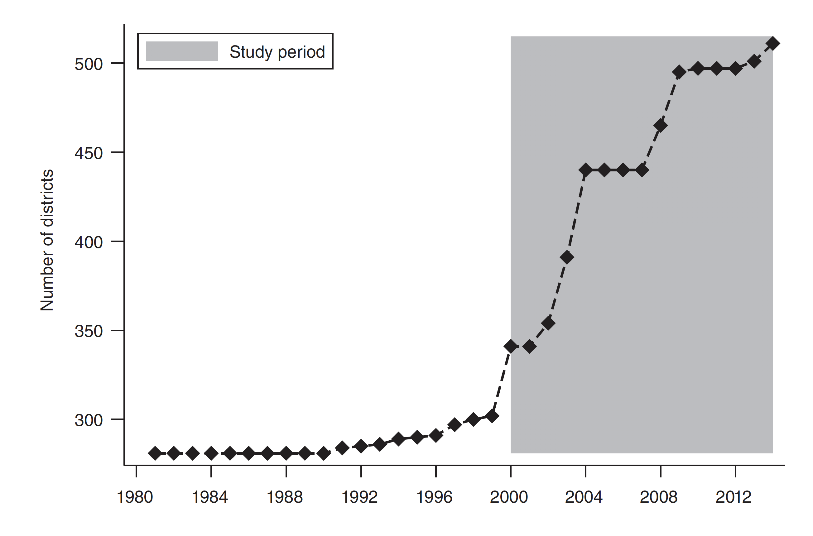 Overall, the number of Indonesian districts nearly doubled between 1999 and 2014.