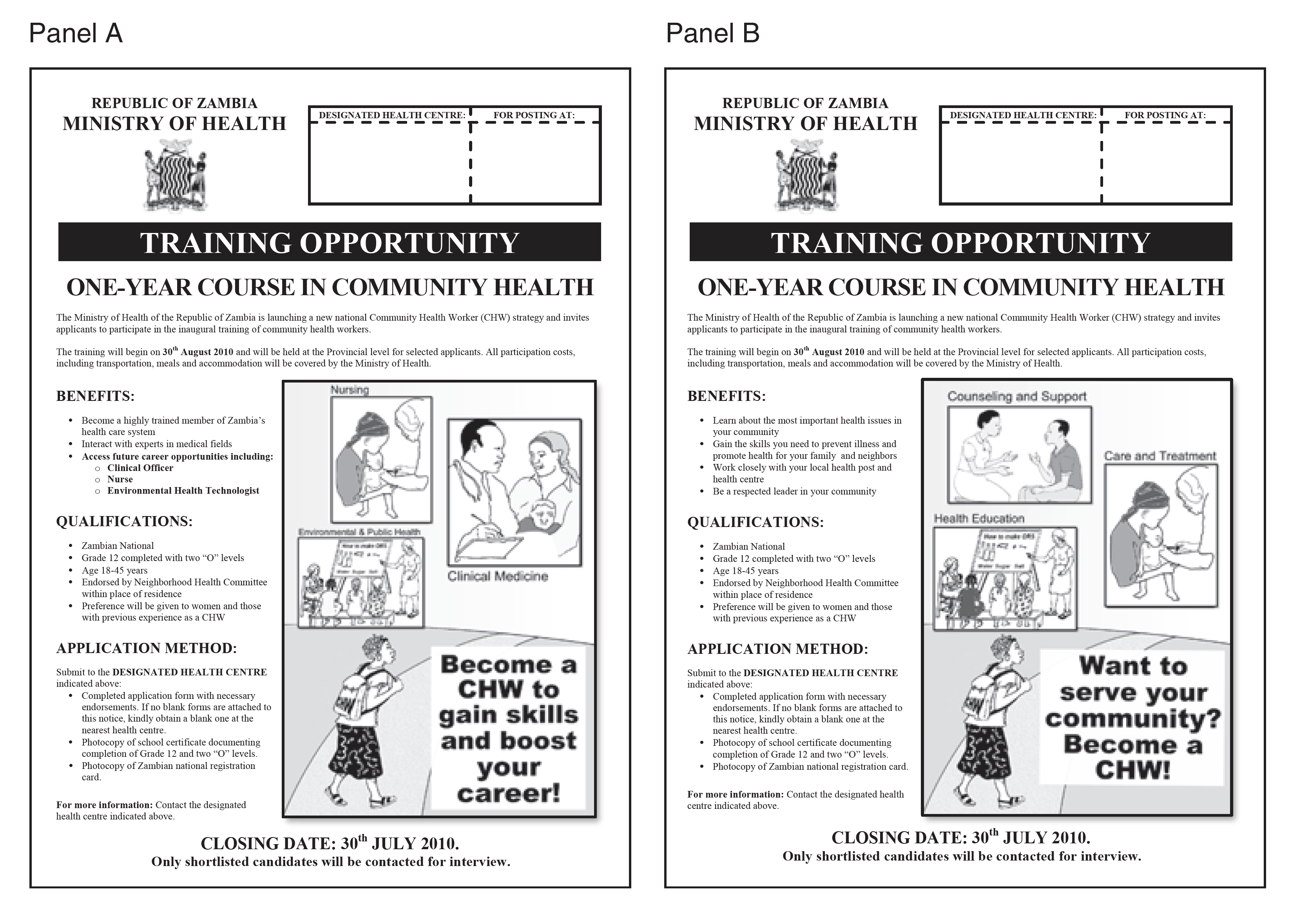 To test that possibility, the authors created two different community health assistant advertisements: one that emphasized career opportunities and another that only mentioned public service.